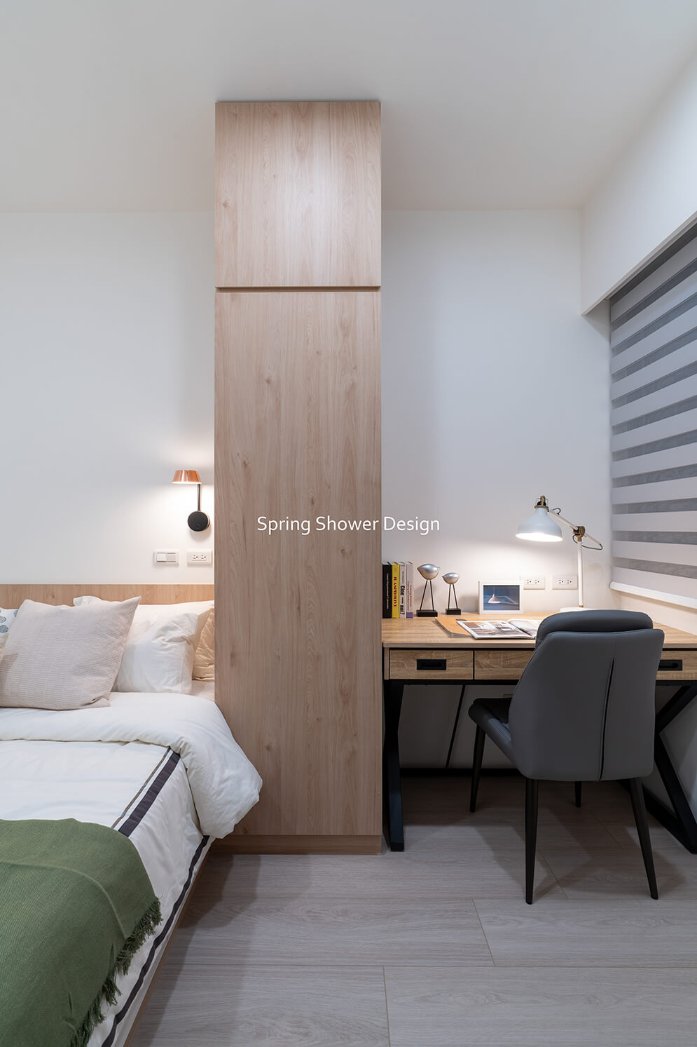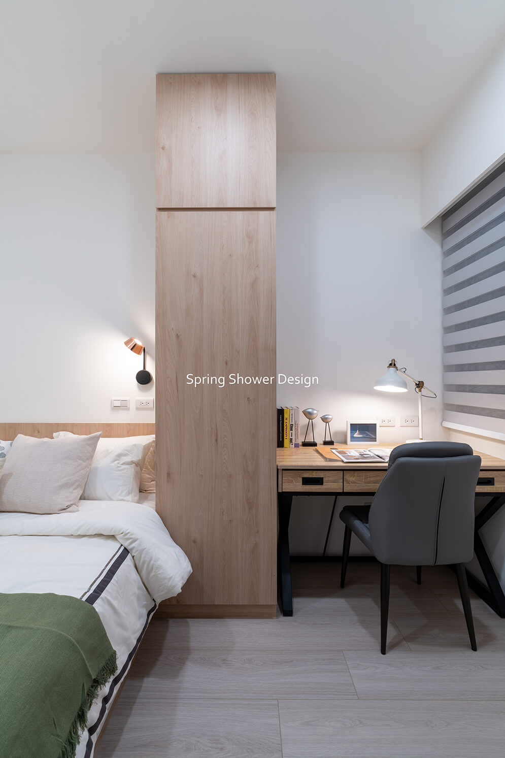 1.改造屋主喜歡的現代、簡約風格,並提升收納量,利用架高櫃子、隱藏式收納空間,滿足屋主期待中收納需求。
