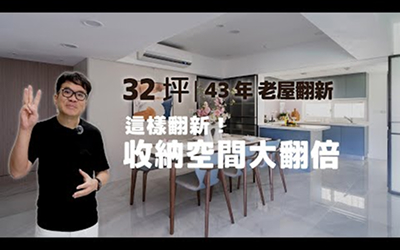 這是一間屋齡43年的老屋翻新案,居住成員為夫妻、兩個女兒與一隻寵物小狗。整體設計以「現代風格」為主軸,融合木作、大理石與銀霞玻璃,營造出兼具質感與實用性的生活氛圍。格局經過全面調整,動線更加流暢,並依照屋主需求打造出海量收納系統。