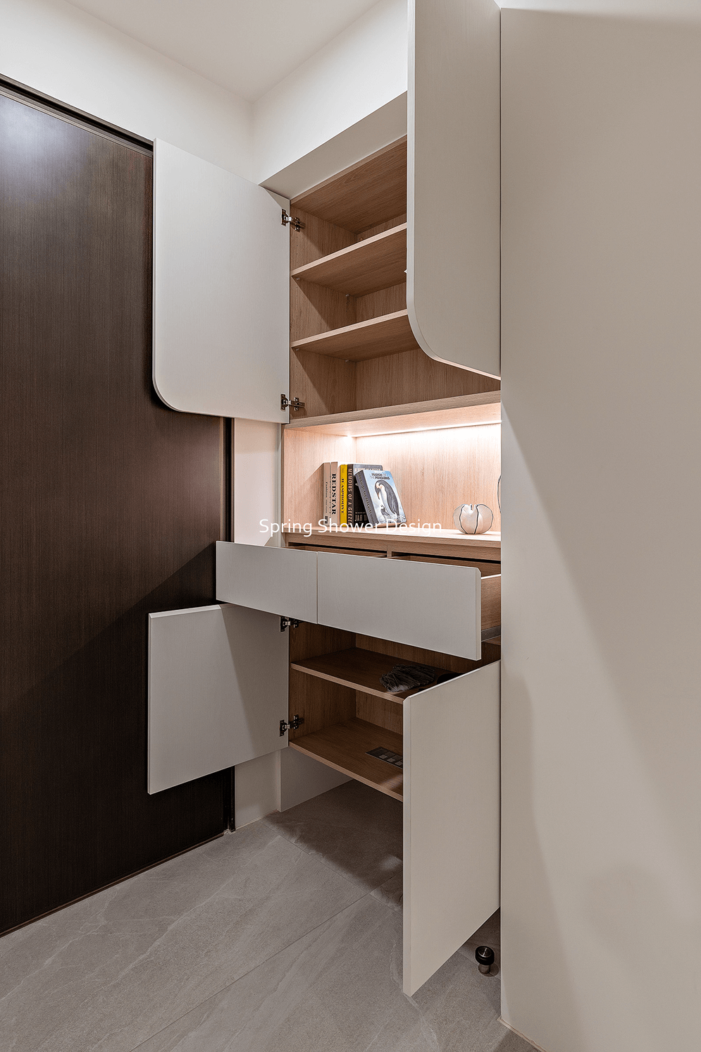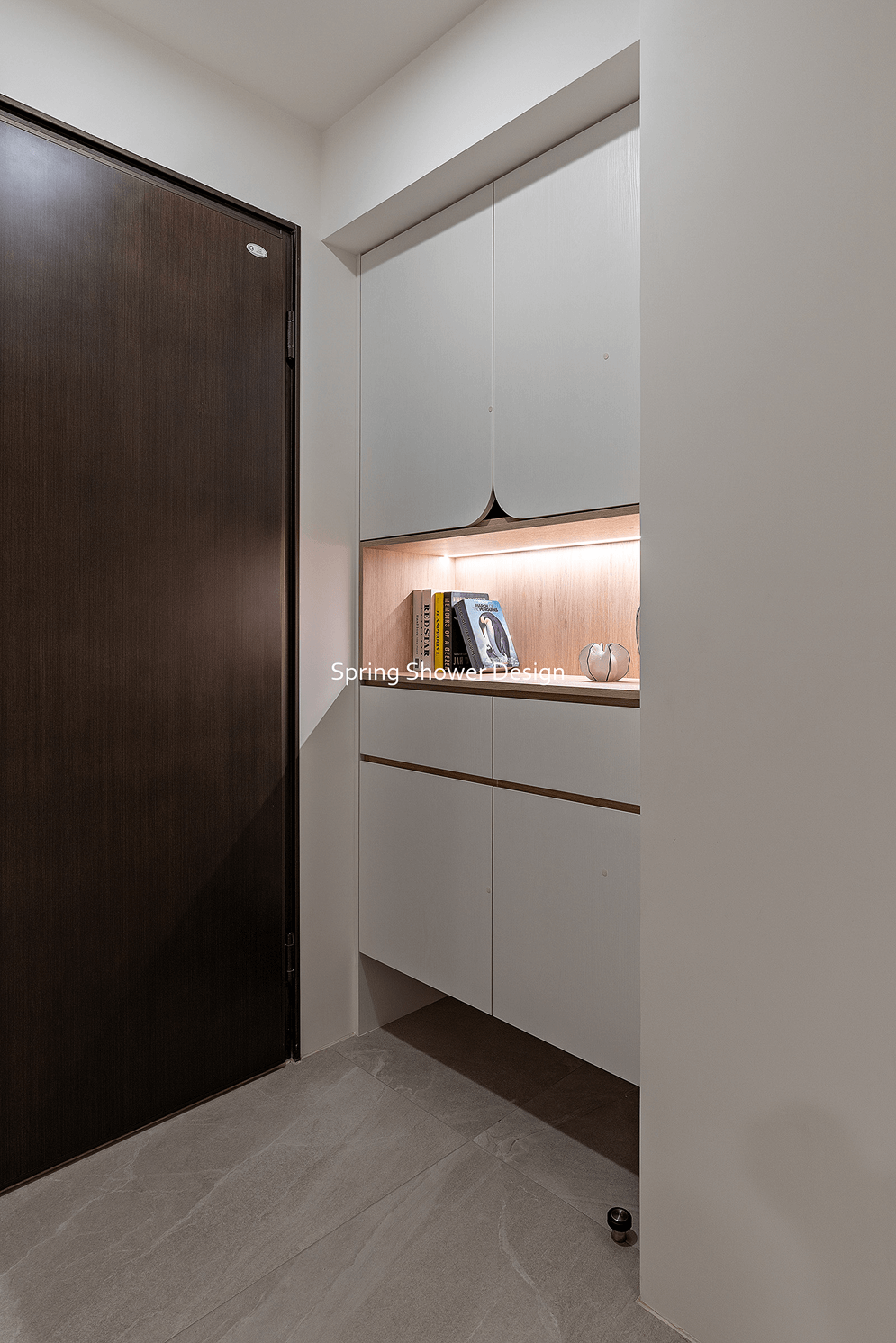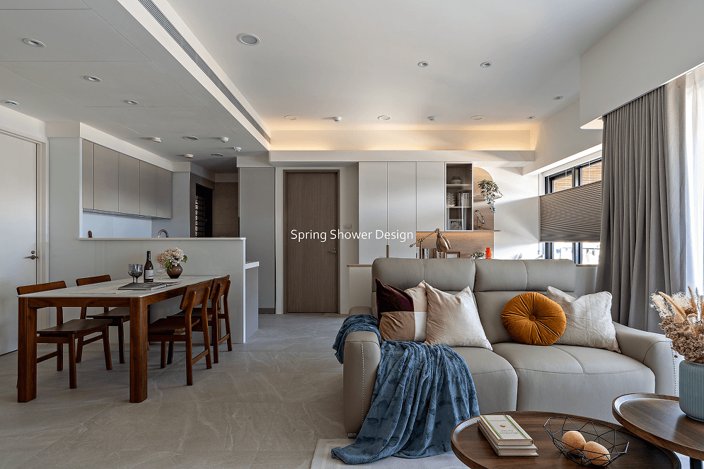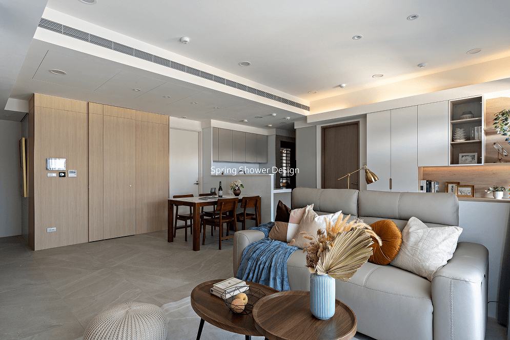 這個家居住成員為屋主夫妻與寶貝寵物貴賓狗,他們喜歡明亮、自然、氣質的木紋風格,並希望透過整合設計,讓空間在視覺上保持簡潔,同時兼顧海量收納與動線實用性。