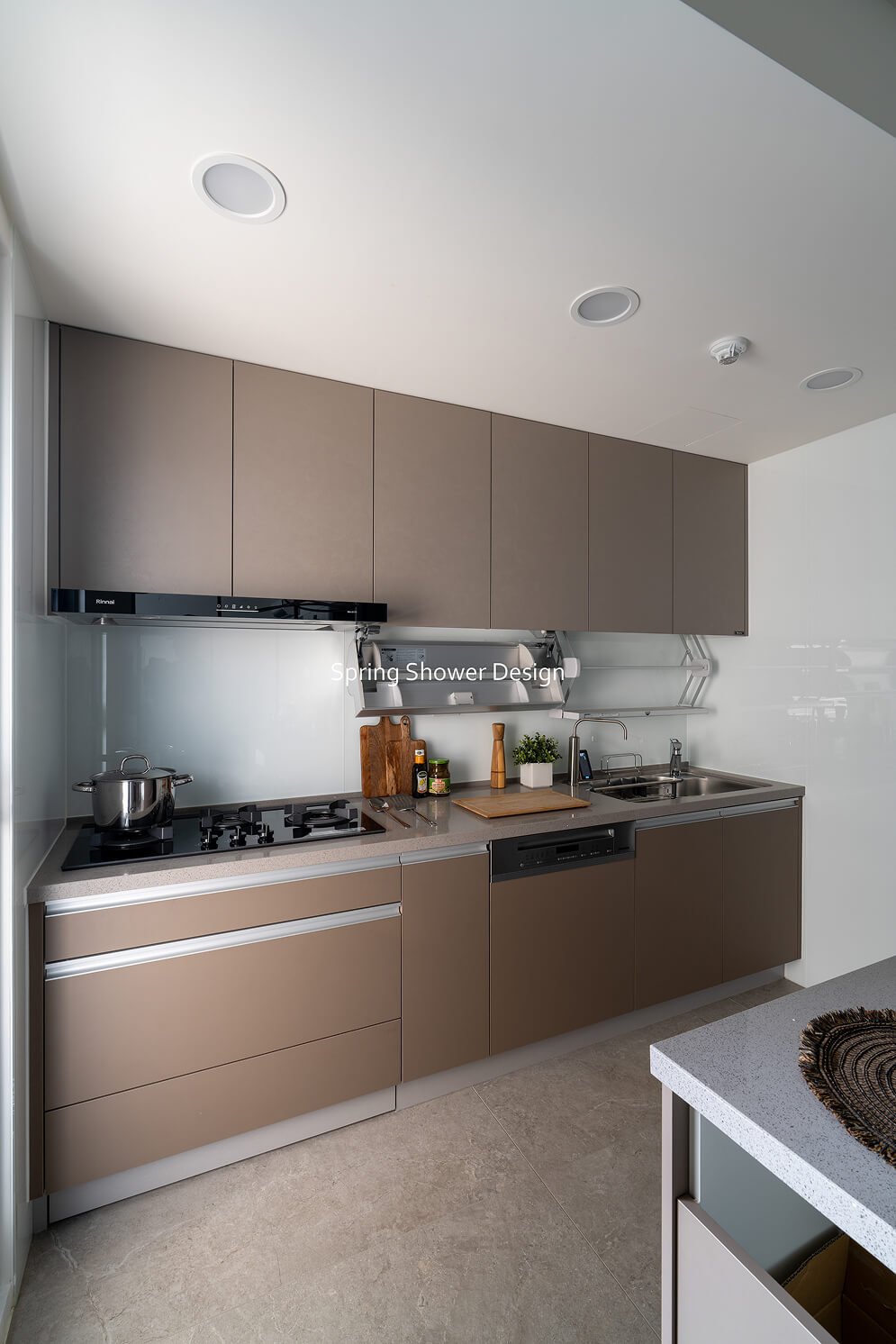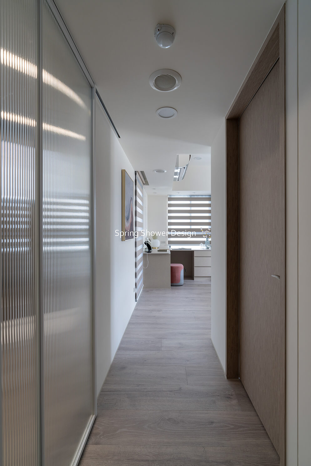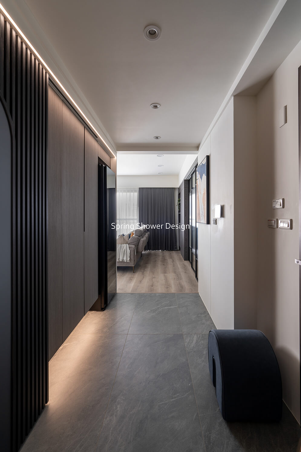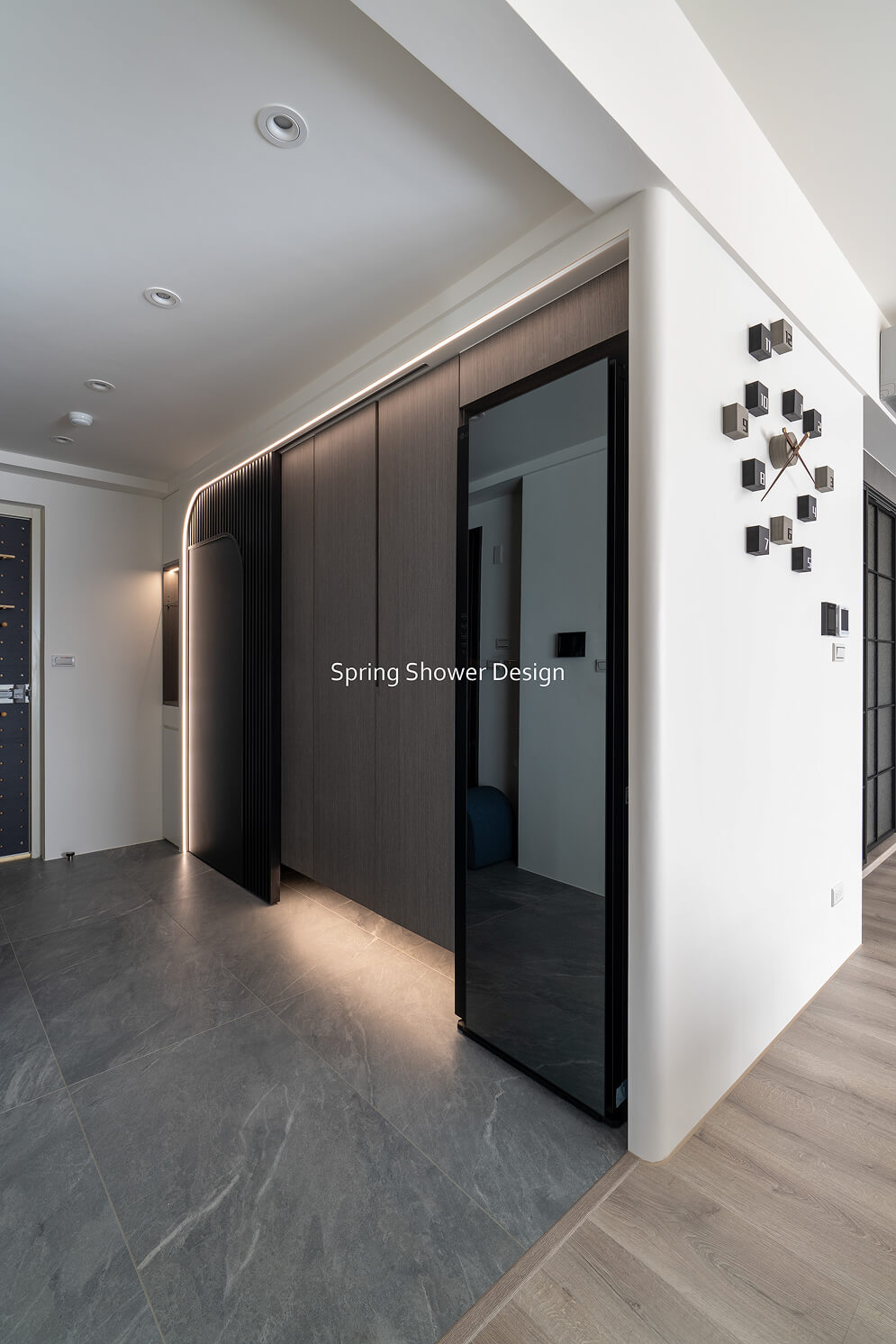 這是屋主一家四口的新家,擁有一整片開闊露臺,他們期待兼具「寬敞感、實用性與高質感」。我們在客變階段將全室退為「毛胚」,重新規劃格局與動線,打造最符合生活需求的居家空間。整體風格以現代俐落為主,以「彈性放大的通透感」與「合適的收納規劃」為設計核心,讓一家人的生活動線順暢、空間層次豐富,同時兼顧機能與美感。