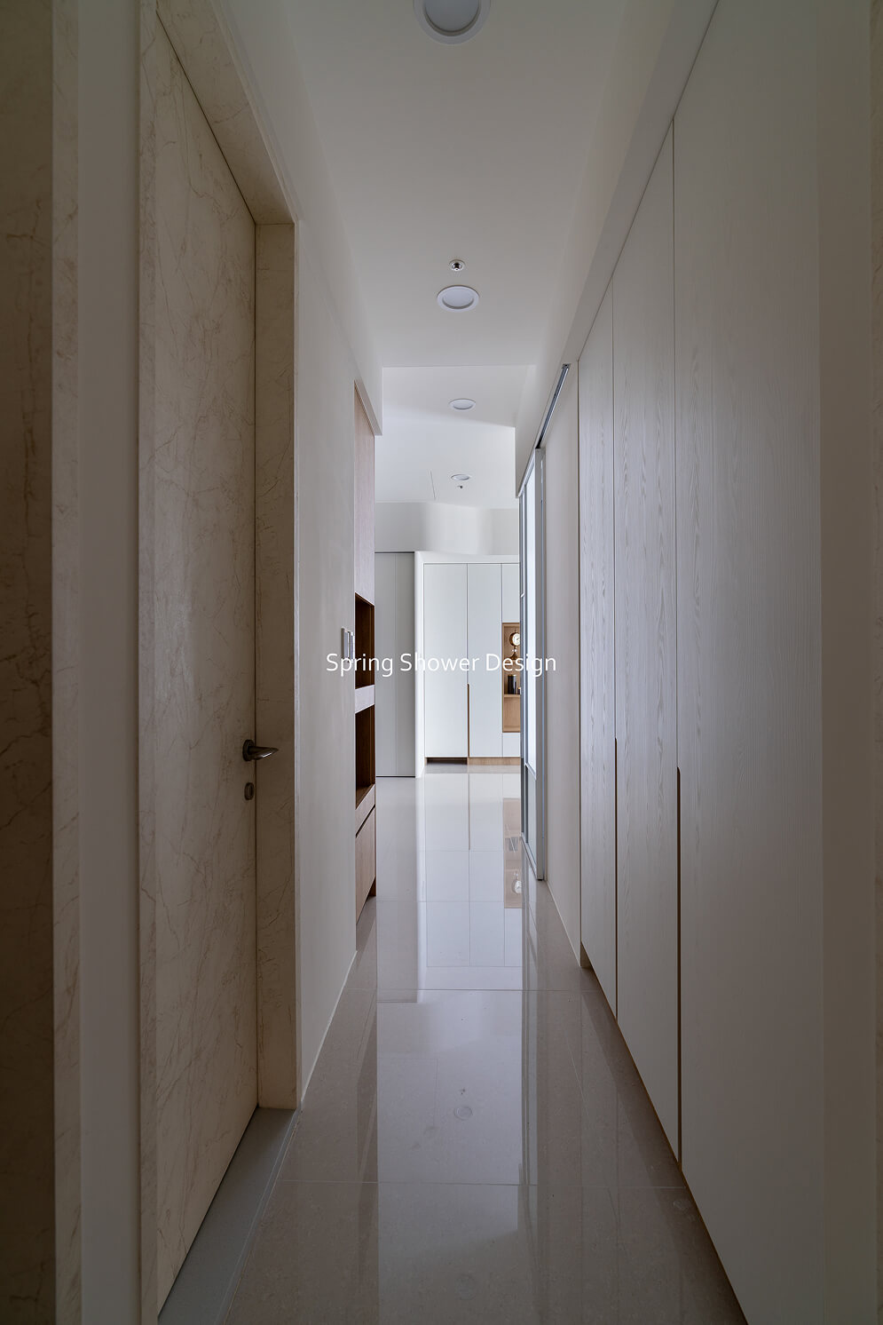 這是屋主一家三口的家:夫妻與求學階段的兒子。我們把握客變機會,重新分配儲藏室、走廊與更衣室空間,為屋主規劃海量收納,卻保有通透感,每個角度都能欣賞高空景觀。